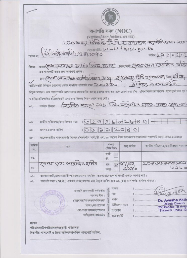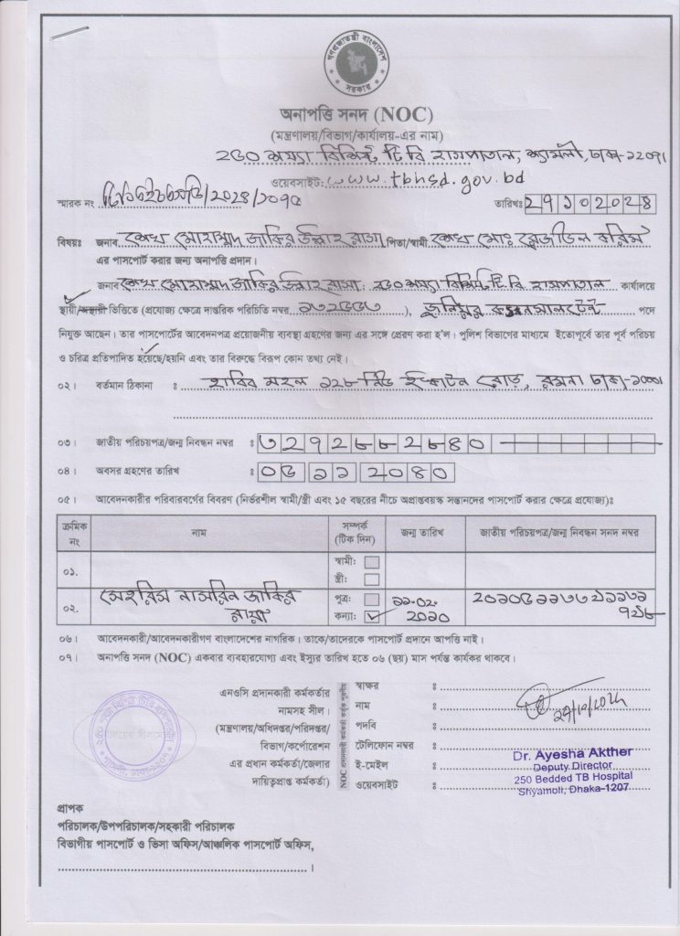 অনাপত্তি পত্র – ড. শেখ মোহাম্মদ জাকিরুল্লাহ