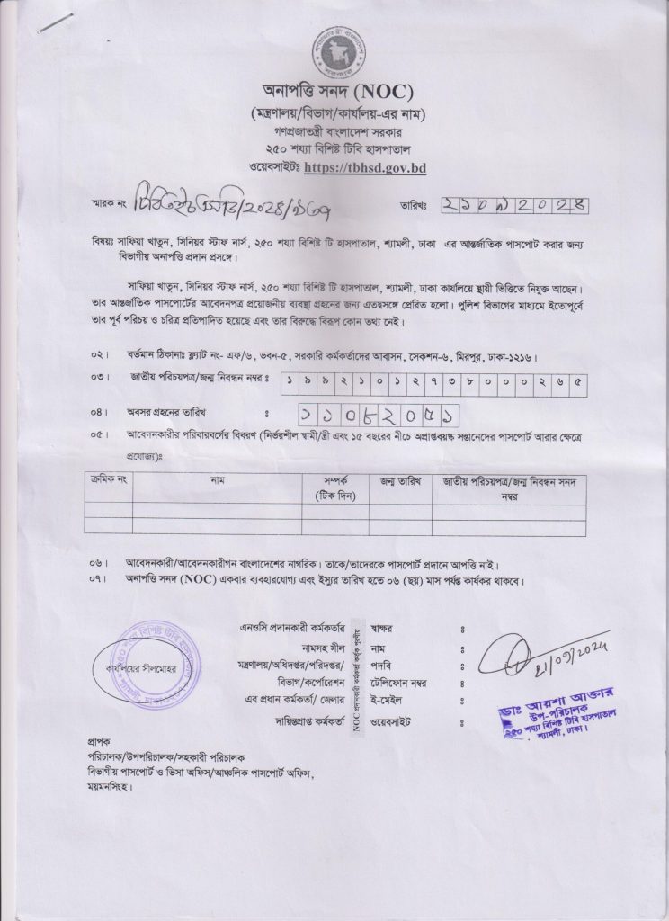 অনাপত্তি পত্র – সাফিয়া খাতুন