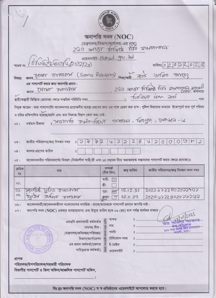 অনাপত্তি পত্র – সোমা রাকসাম
